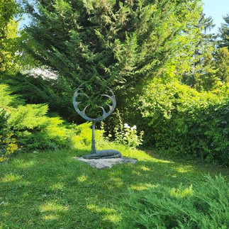 In August, the Museum was closed, but the garden was open, inviting me to explore its beauty. I ascended the beautiful pathway, admiring the modern deer monument that stood as a symbol of Bartok's enduring legacy. At the top of the garden, there it was, Bartok's monument, facing the small performance amphitheater and a magnificent two-story house, a sight that inspired awe and appreciation.
